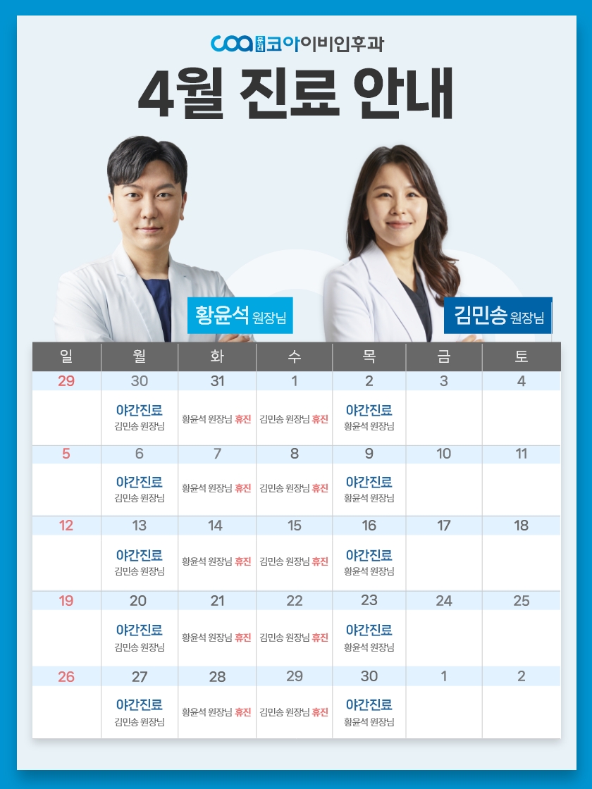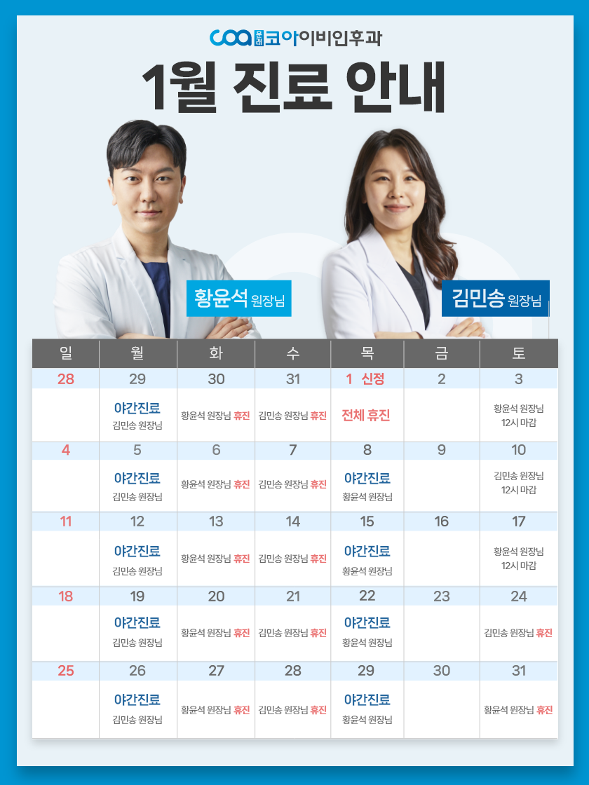 축적된 경험으로 성공적인 결과 코수술 1,000CASE+ 풍부한 경험이 만들어 낸 수술실력으로고난도 케이스까지 좋은 결과를 만들어냅니다 더 빠르고 더 편안한 치료 진단과 치료를 하루만에 대학 병원에서 몇주씩 걸리는 진단과 치료가2인 전문의 진료로 대기시간은 짧게, 하루만에 가능합니다 이비인후과 모든 영역을 체계적으로 진료 대학병원까지 가는 수고로움,문래코아에서 덜어 드립니다 3차원 고해상도 CT 장비, 수면다원검사, 첨단 어지럼 검사장비,모든 종류의 청각 검사 장비를 보유하여 멀리 가지 않아도정확한 진단을 받아보실 수 있습니다