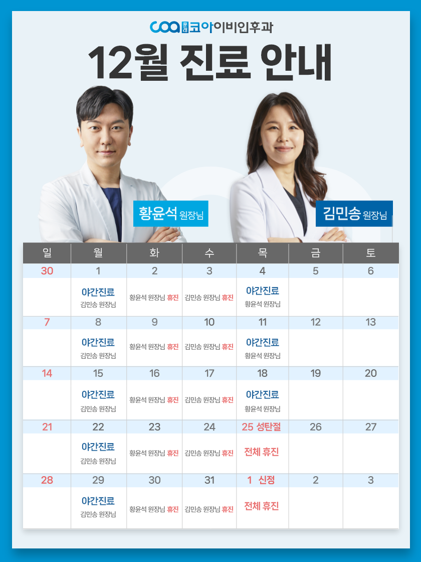 축적된 경험으로 성공적인 결과 코수술 1,000CASE+ 풍부한 경험이 만들어 낸 수술실력으로고난도 케이스까지 좋은 결과를 만들어냅니다 이비인후과 모든 영역을 체계적으로 진료 대학병원까지 가는 수고로움,문래코아에서 덜어 드립니다 3차원 고해상도 CT 장비, 수면다원검사, 첨단 어지럼 검사장비,모든 종류의 청각 검사 장비를 보유하여 멀리 가지 않아도정확한 진단을 받아보실 수 있습니다 ONE-STOP 진료 진단과 치료를 하루만에 대학 병원에서 몇주씩 걸리는 진단과 치료가2인 전문의 진료로 대기시간은 짧게, 하루만에 가능합니다